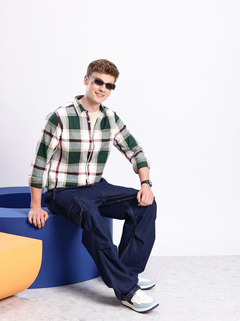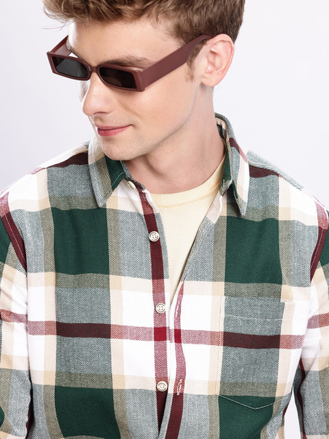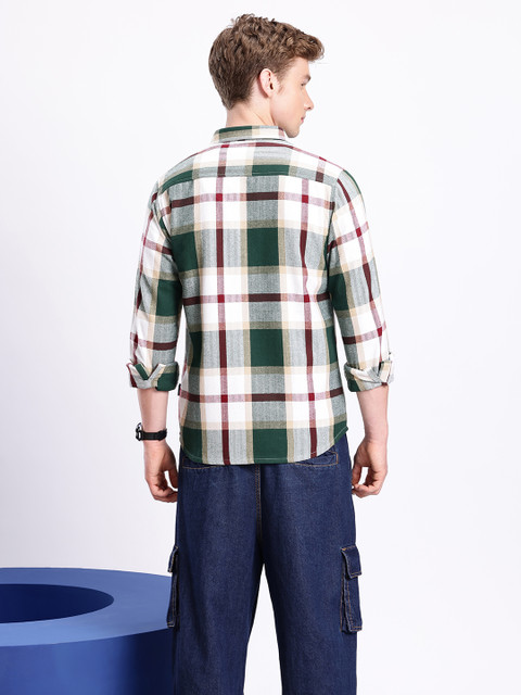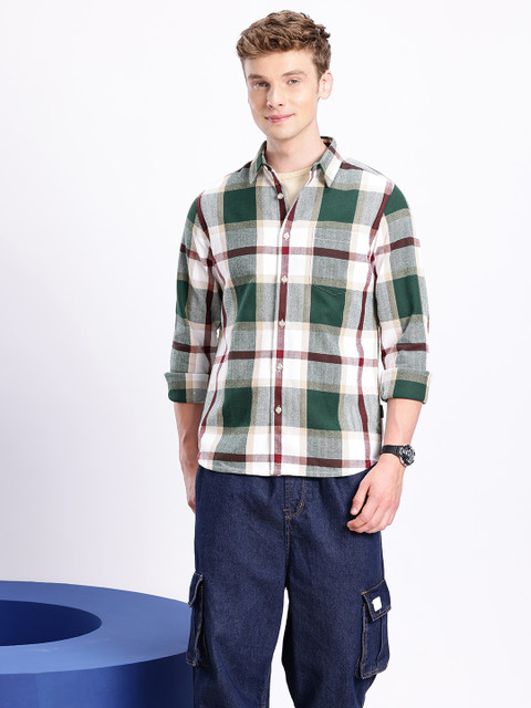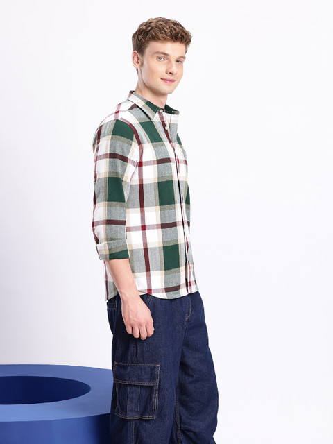Green other checks checked opaque Casual shirt ,has a spread collar, button placket, 1 patch pocket, long regular sleeves, curved hem
