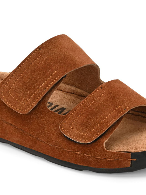 A pair of tan comfort sandals