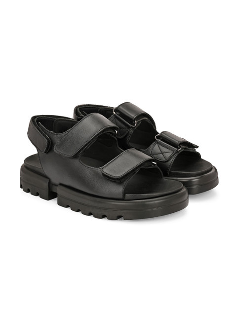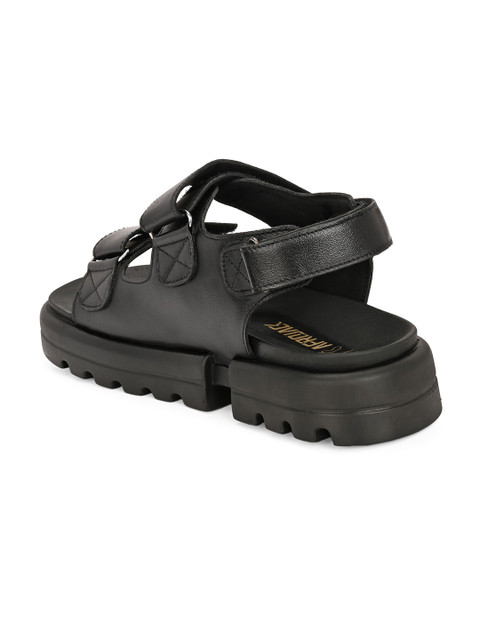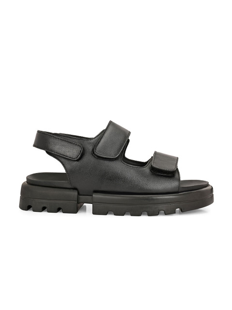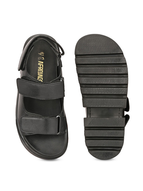 A pair of black comfort sandals