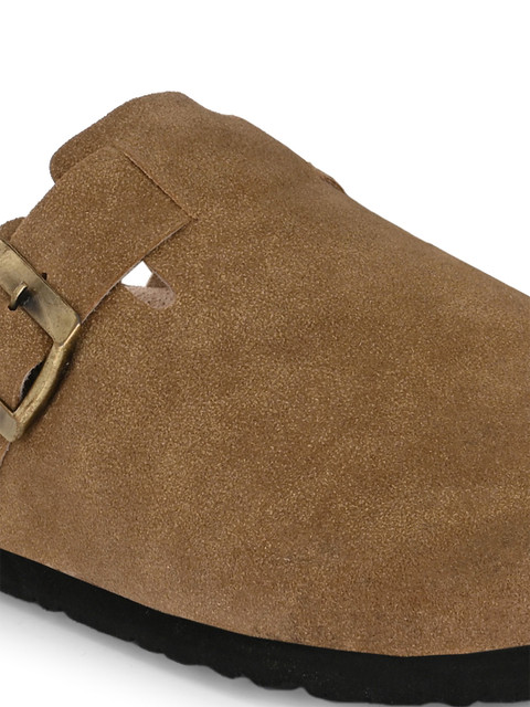 - Leather upper with slip-on closure