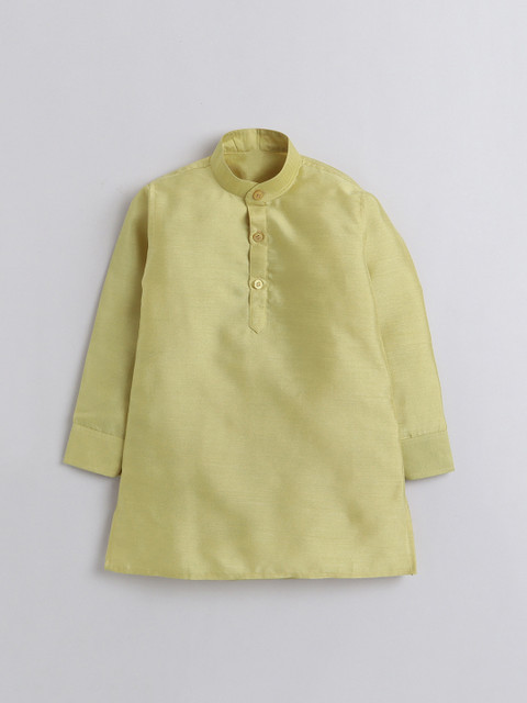Green solid kurta, has a mandarin collar, a short button placket, long sleeves and side slits