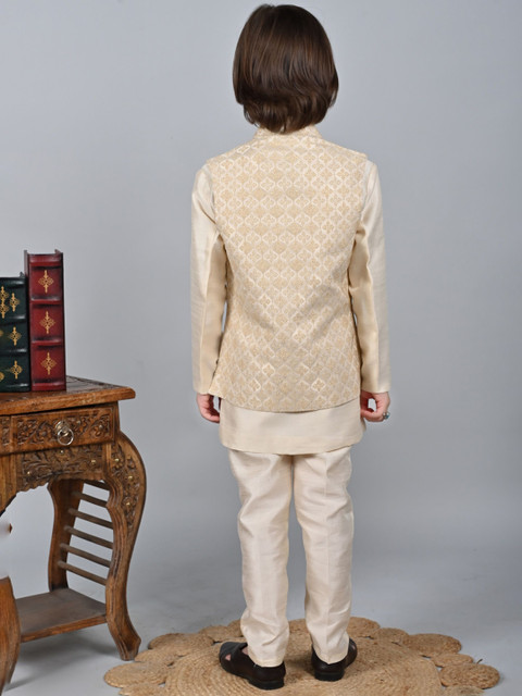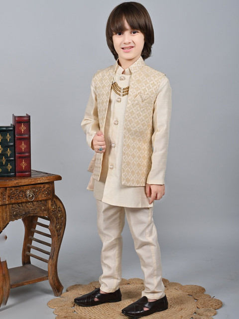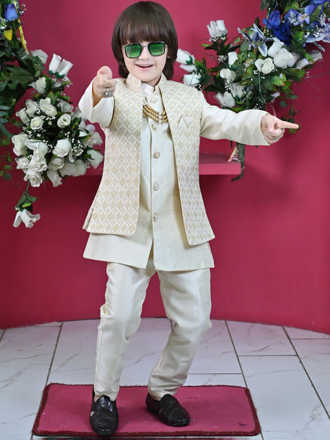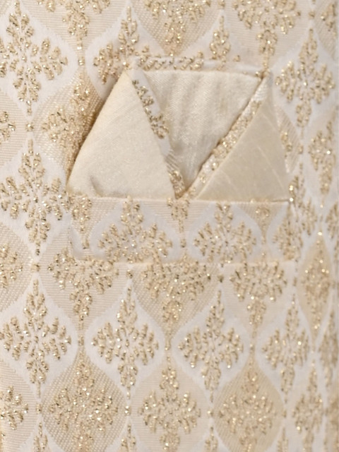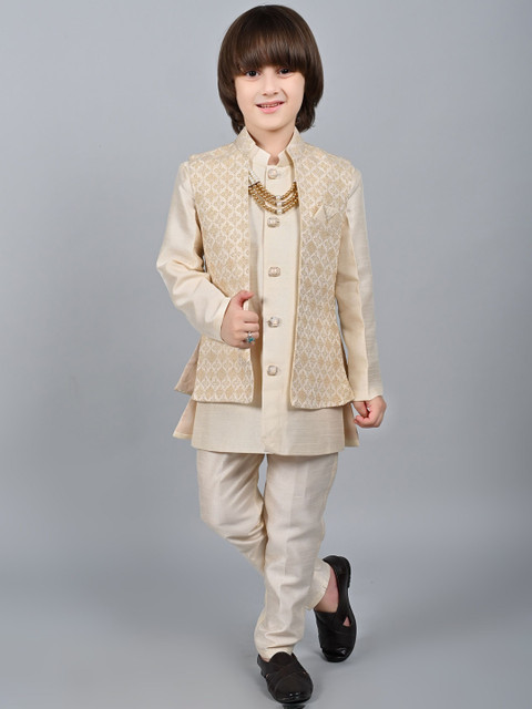 Beige solid sherwani, has a mandarin collar with button closures and long sleeves