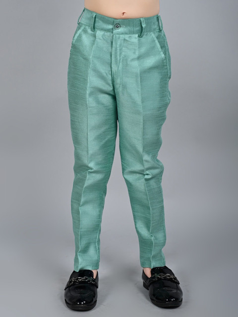 Turquoise Blue solid Trouser has elasticated waistband secured with button closure