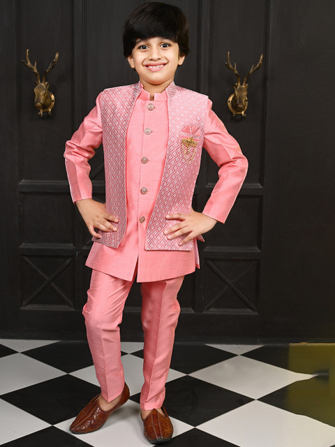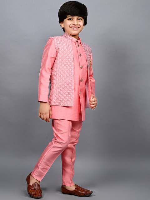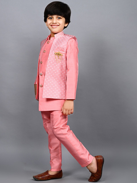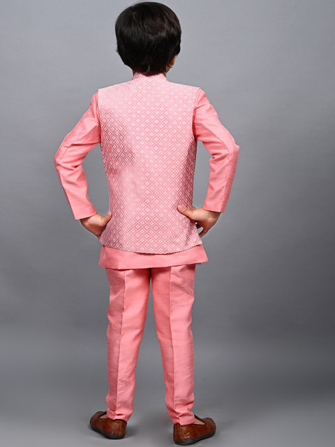 ahhaaaa Boys Self Designed Mandarin Collar 3-Piece Sherwani Set