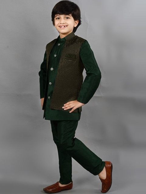 Green solid kurta, has a mandarin collar, front button closures and long sleeves