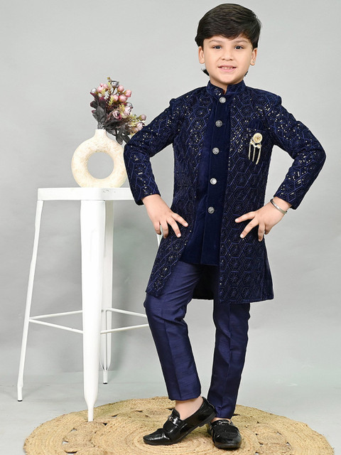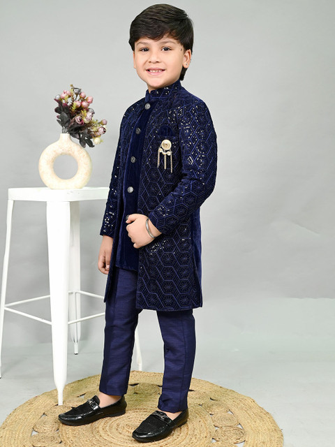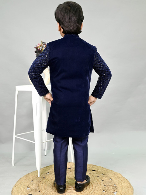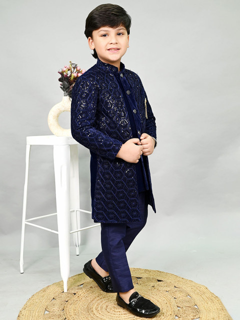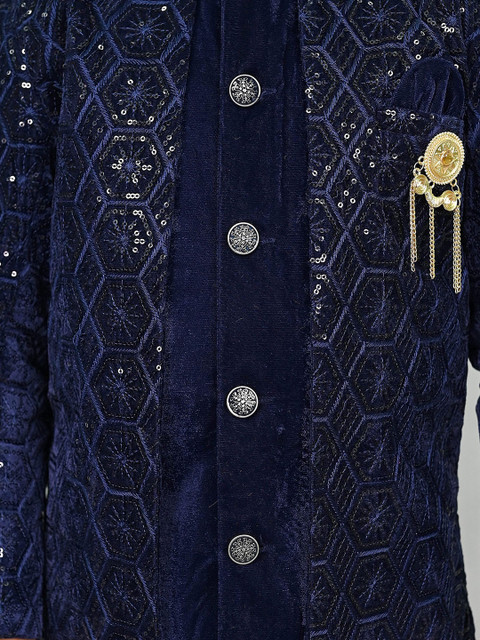 Navy blue embroidered sherwani set