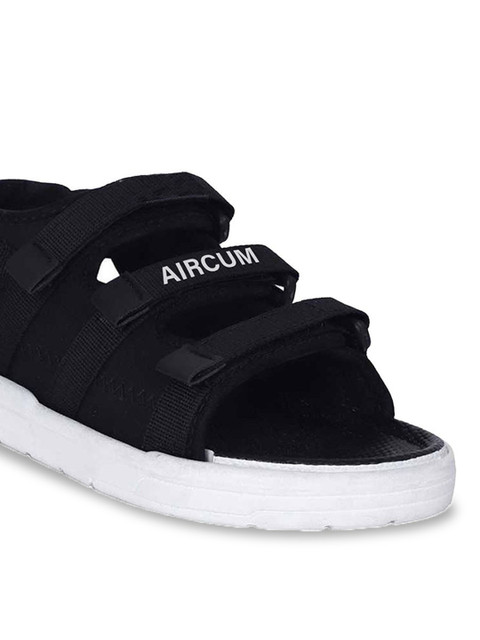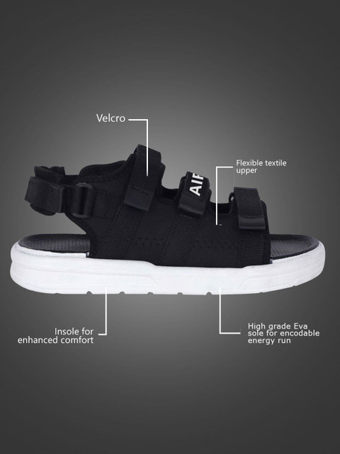 A pair of black comfort sandals