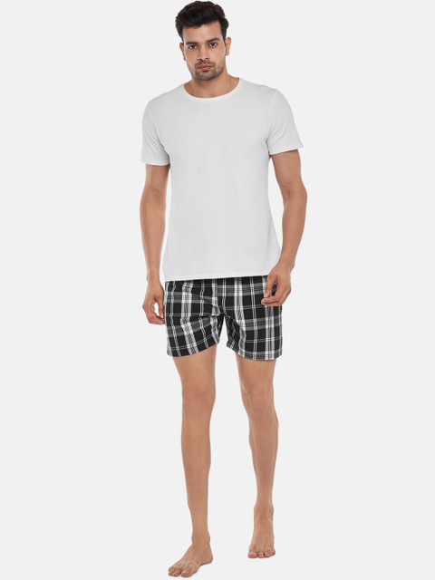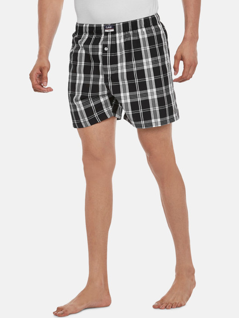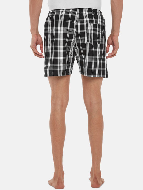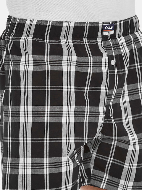 Black and White checked boxer has an inner elasticated waistband with slip-on closure, a Back pocket, and fly front