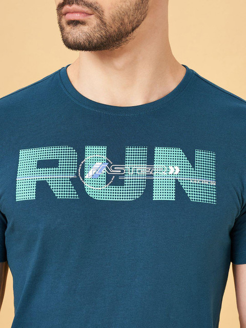 Ajile by Pantaloons Men Typography Printed Round Neck Cotton Slim Fit T-Shirt