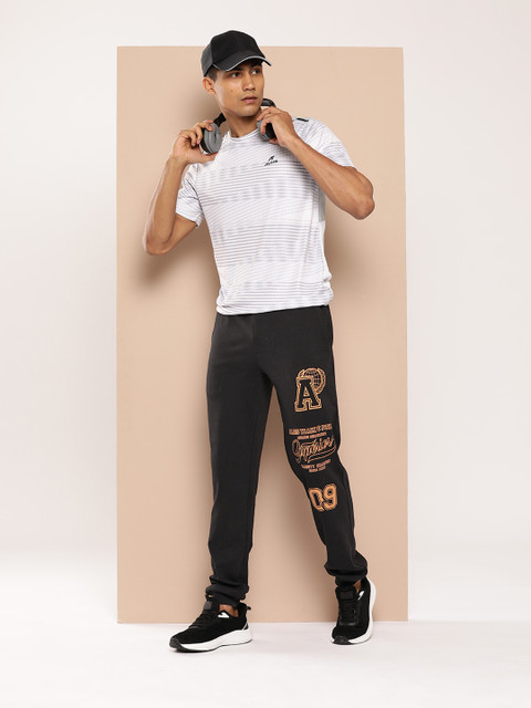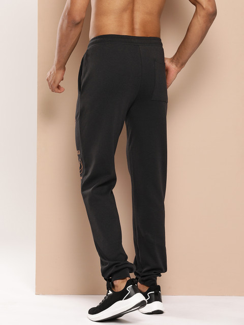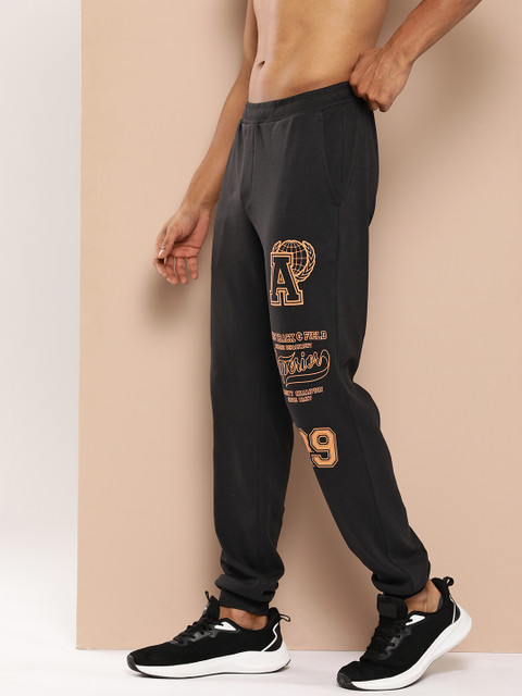 Black and orange typography printed joggers, has elasticated waistband, drawstring closure, 2 pockets, cuffed hem