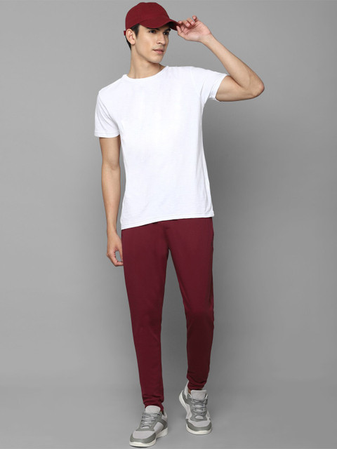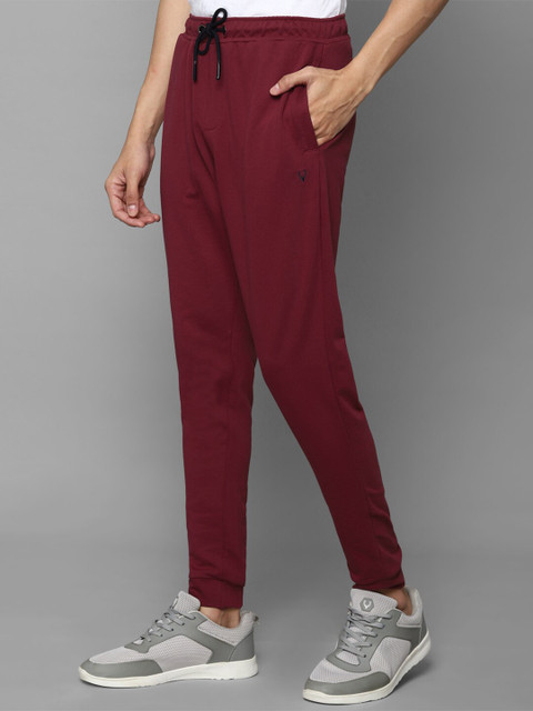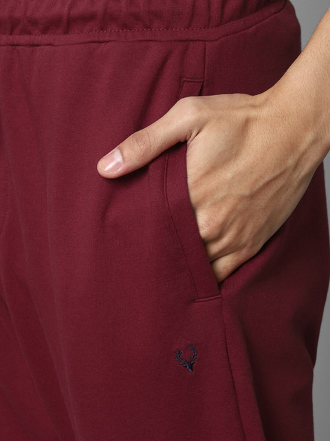 Maroon solid regular-fit joggers, has an elasticated waistband with drawstring closure, 3 pockets and cuffed hems