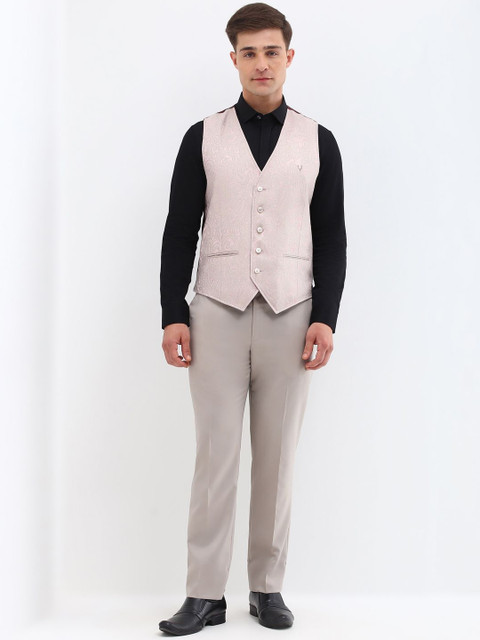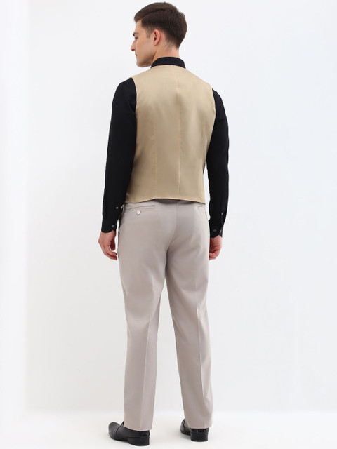 Grey solid single-breasted slim-fit waistcoat, has a V-neck, button closures on the front, and two pockets