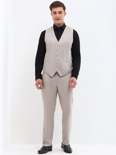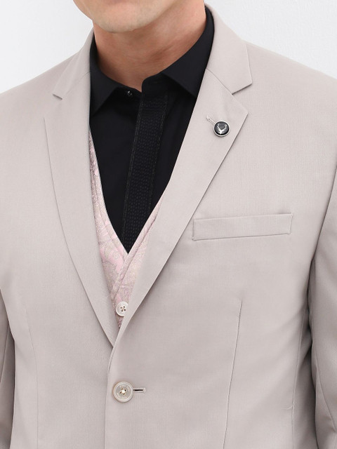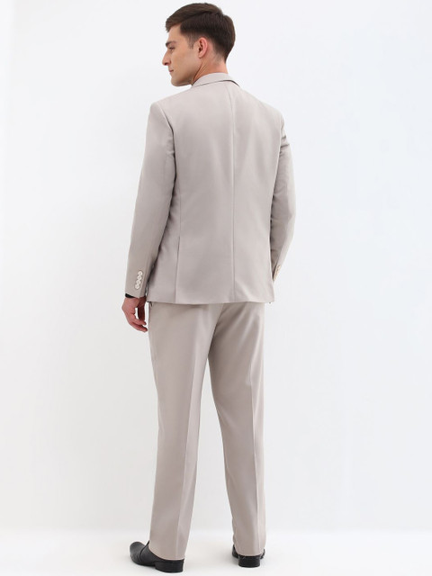 Grey solid slim-fit three-piece formal suit