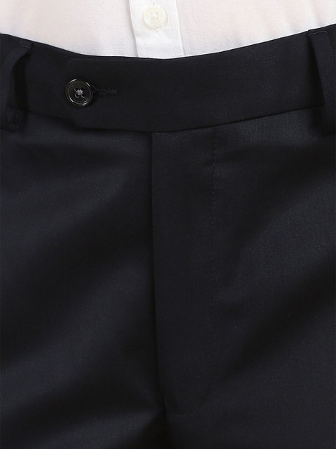 Blue solid slim-fit mid-rise trousers, has a waistband with belt loops, a zip fly and a button closure, and four pockets