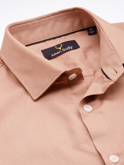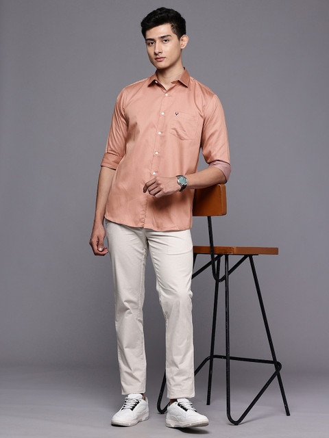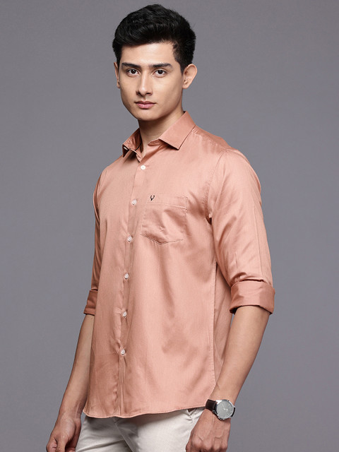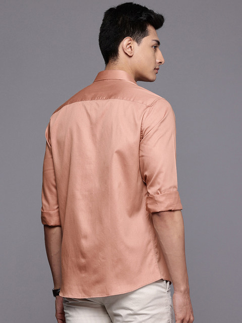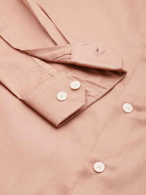Mauve peach solid opaque Casual shirt ,has a cutaway collar, button placket, 1 patch pocket, long regular sleeves, curved hem