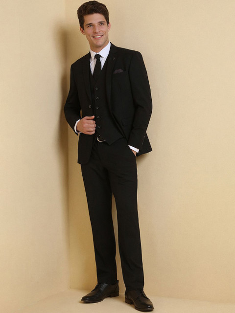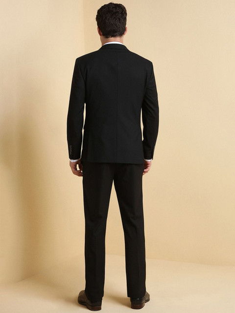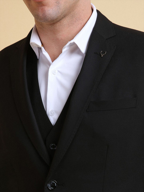 Black solid slim-fit single-breasted blazer, has a notched lapel with button closures, long sleeves and three pockets