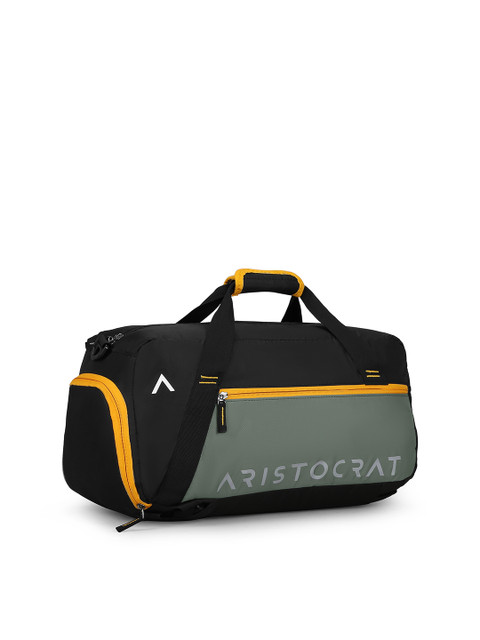 - Features: Aristocrat Sport Power Duffel Bag, Dedicated Shoe Pocket, 2 Side Pockets, 1 Front Easy Access Pocket, Spacious, Robust Construction, Mesh detail on the side, Doubles as a backpack with two attached shoulder straps on the bottom