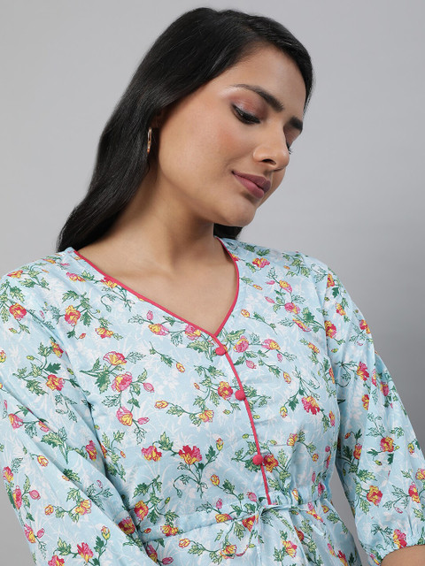 - Blue & pink & green a-line kurti