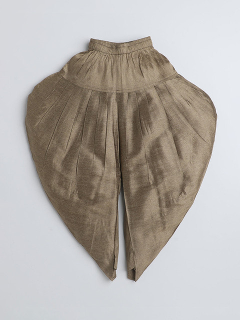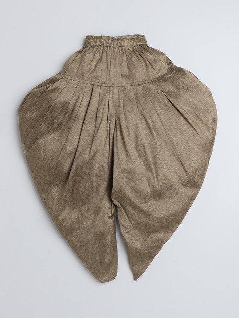 Brown solid trousers, has a partially elasticated waistband with belt loops, button closure, zip fly and two pockets
