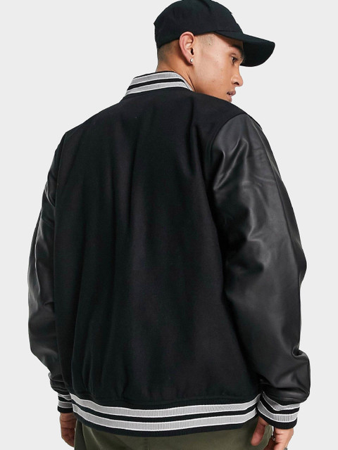 Be Savage Men Striped Fleece Windcheater and Water Resistant Leather Jacket