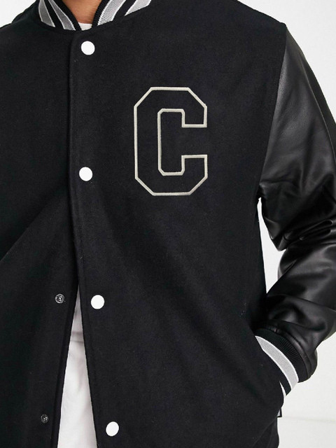 Be Savage Men Camouflage Checked Fleece Windcheater and Water Resistant Leather Jacket