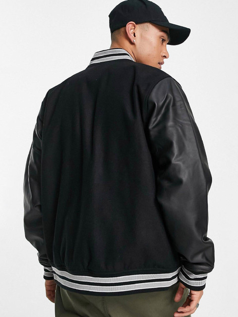 Be Savage Men Striped Fleece Windcheater and Water Resistant Leather Jacket
