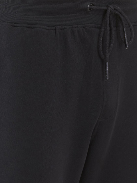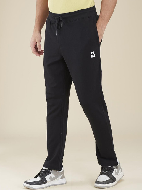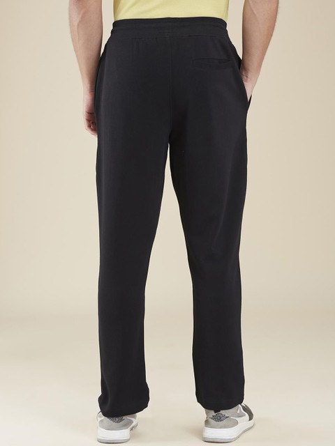 Black solid regular-fit mid-rise track pants, has an elasticated waistband with drawstring closure and three pockets
