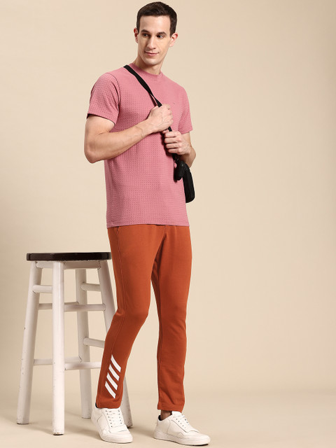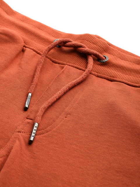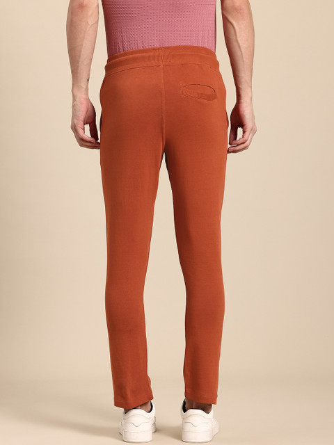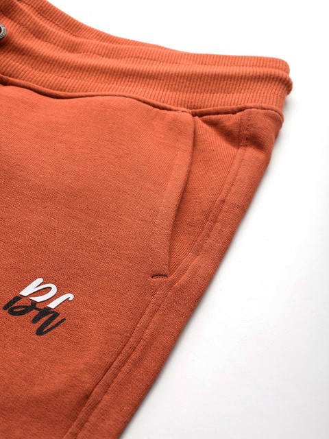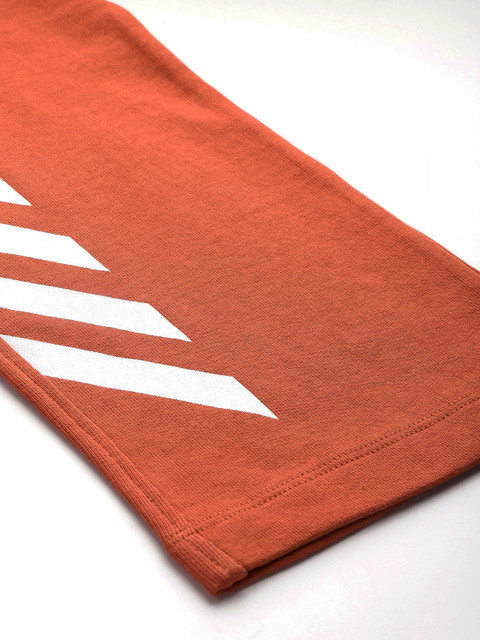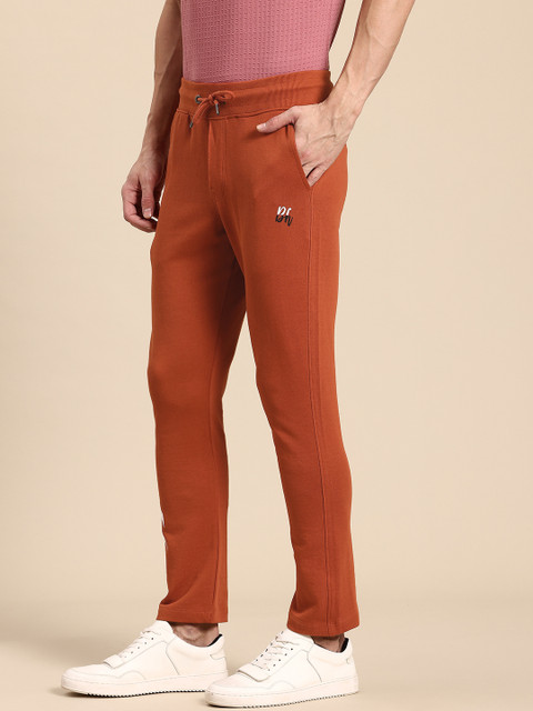 - Rust orange solid track pants with striped detail