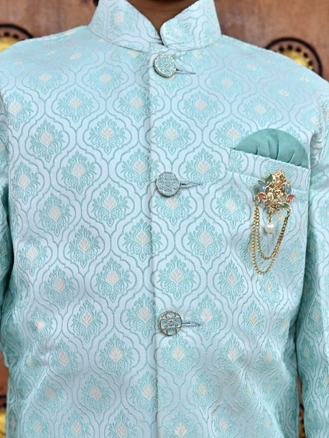 KISAH Boys Ethnic Self-Design Indowestern Sherwani Set
