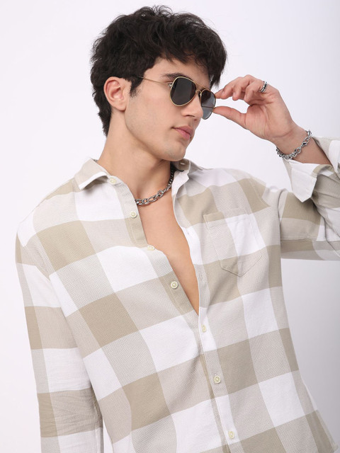 VASTRADO Men Classic Spread Collar Checked Cotton Slim Fit Casual Shirt