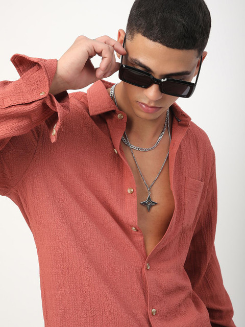 VASTRADO Men Classic Spread Collar Textured Casual Shirt