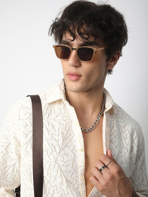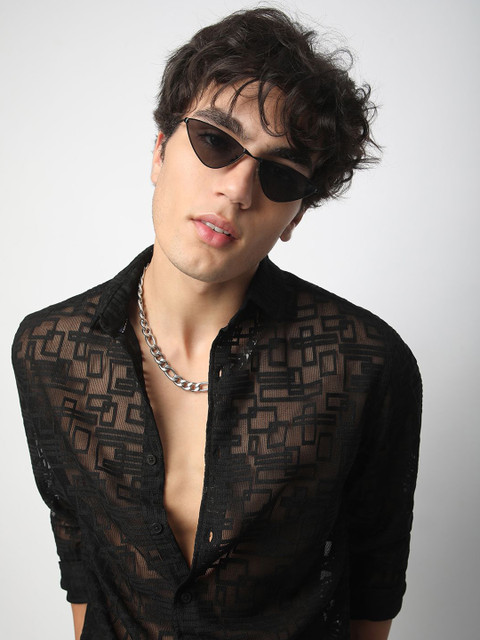 VASTRADO Men Classic Spread Collar Geometric Self Design Slim Fit Casual Shirt