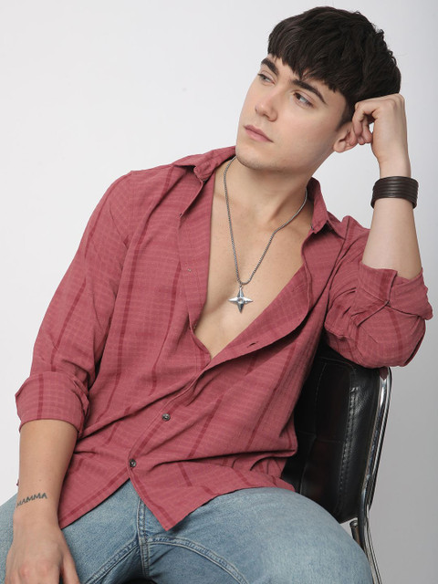 VASTRADO Men Classic Slim Fit Opaque Checked Casual Shirt