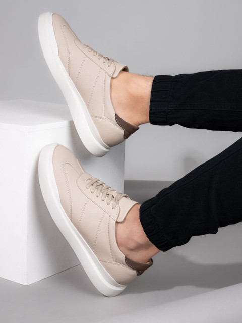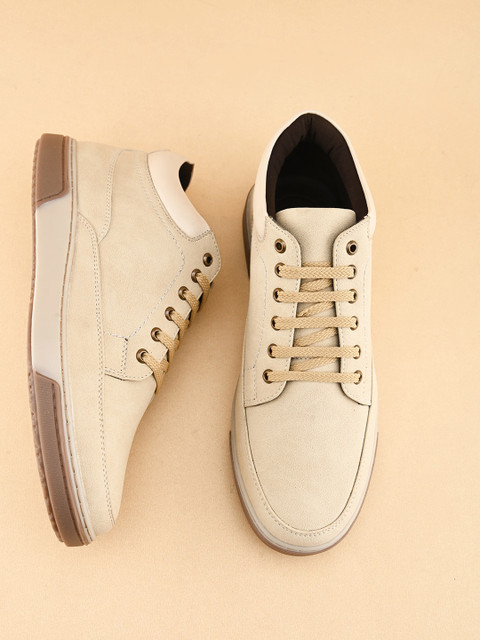 The Roadster Lifestyle Co. Men Cream-Coloured Round Toe Memory Foam Sneakers