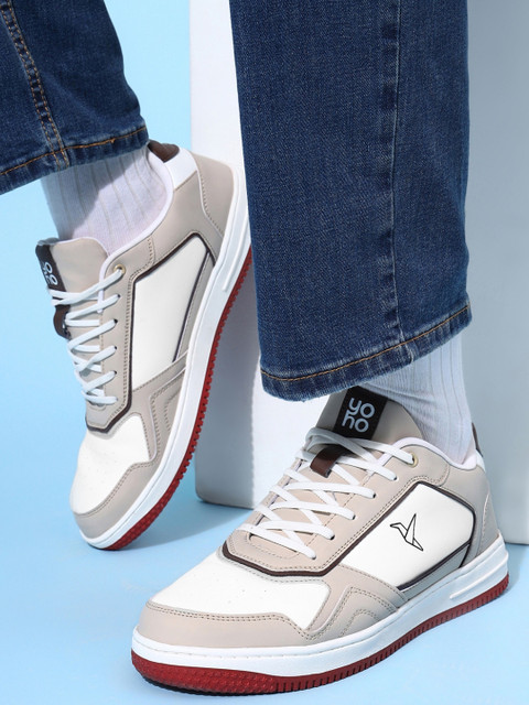 yoho Men Mid Top Colourblocked Lightweight Memory Foam Insole Contrast Sole Sneakers