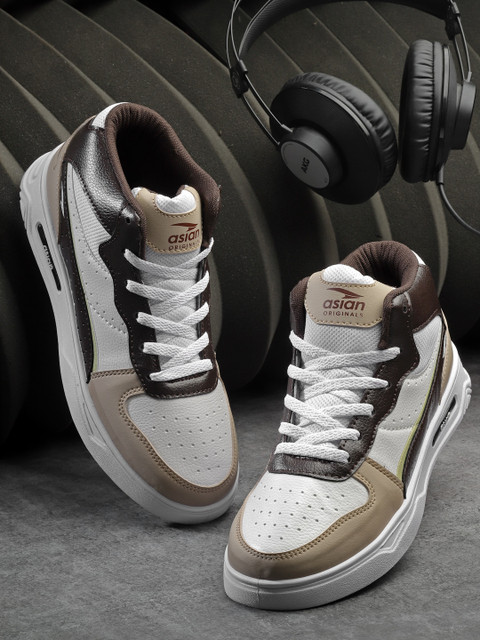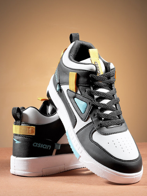 ASIAN Men Colourblocked Mid-Top Synthetic Leather Sneakers