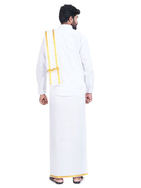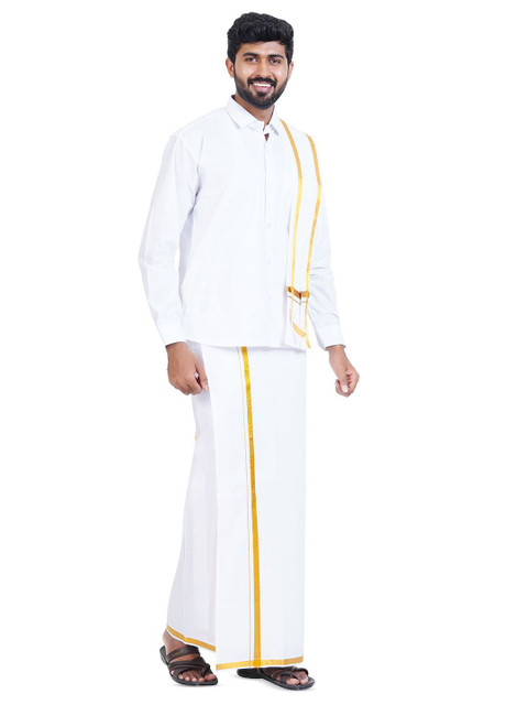 This set consists of a Shirt, Veshti & Angavasthiram