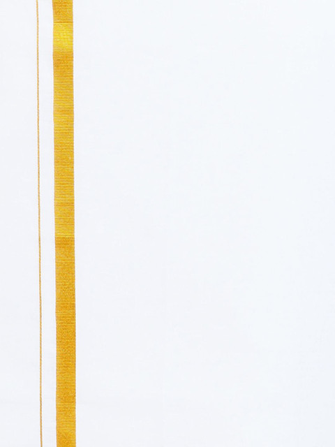 White and gold-toned solid Veshti, has adjustable closure