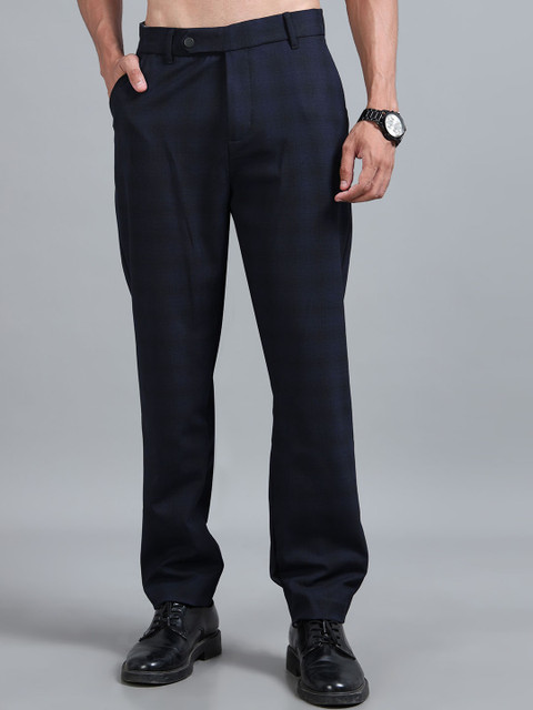 RIGS AND RAGS Men Relaxed Checked Mid-Rise Slim Fit Trousers