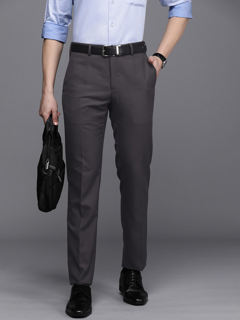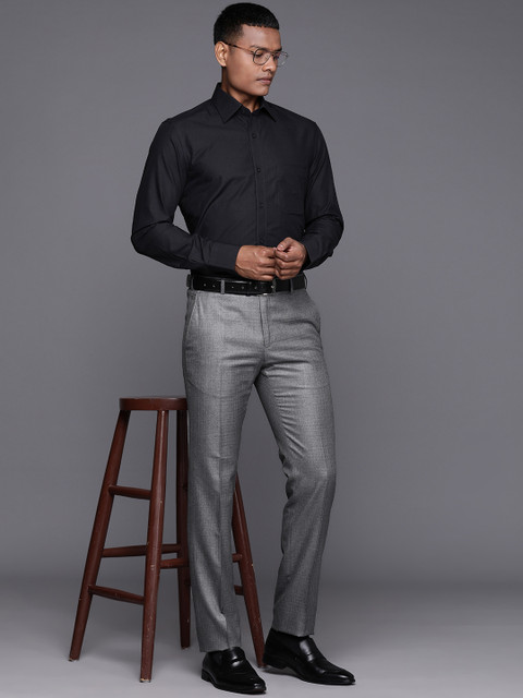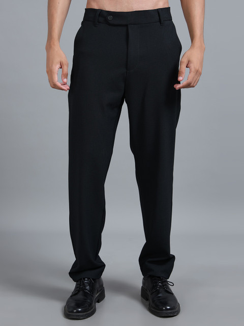 READYON Men Smart Regular Fit Mid-Rise Cotton Formal Trousers