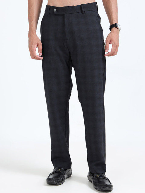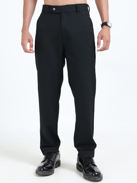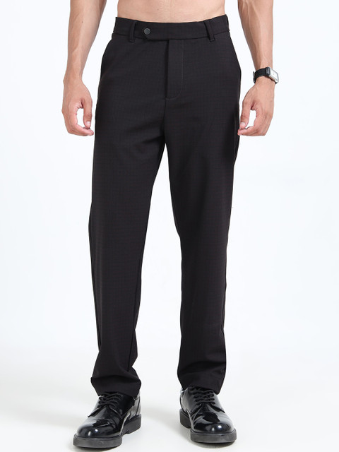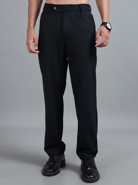 RIGS AND RAGS Men Checked Relaxed Regular Fit Mid-Rise Formal Trousers patterned pulse