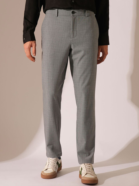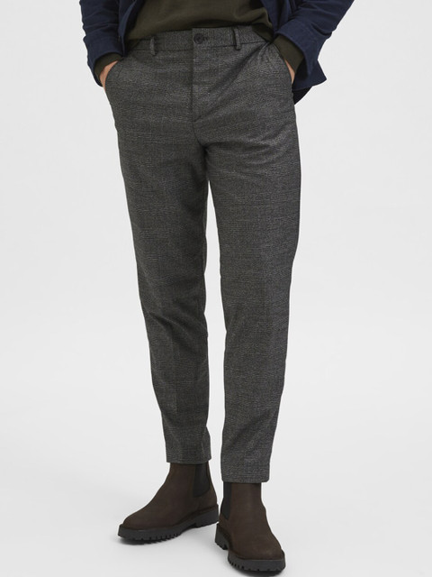 SELECTED Men Grey Checked Slim Fit Checked Trousers