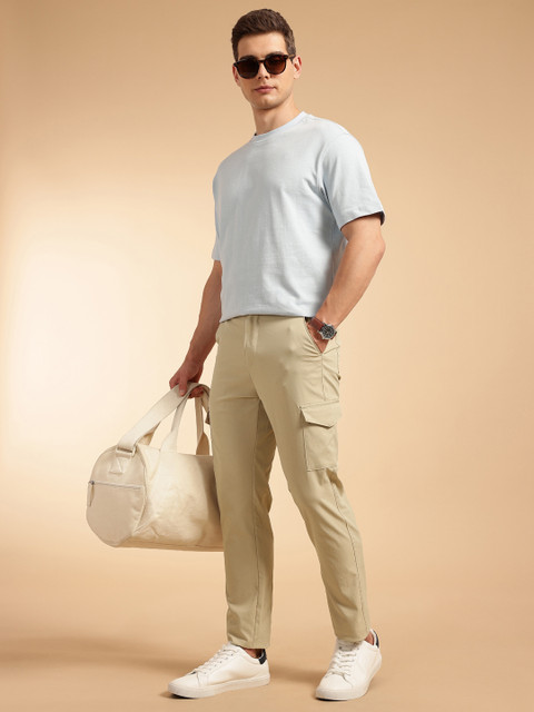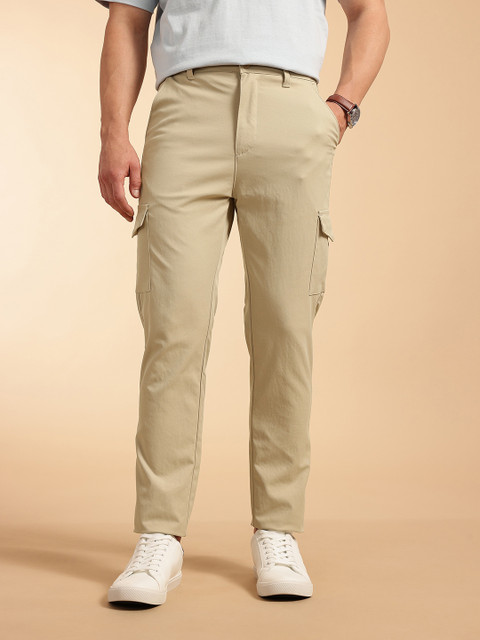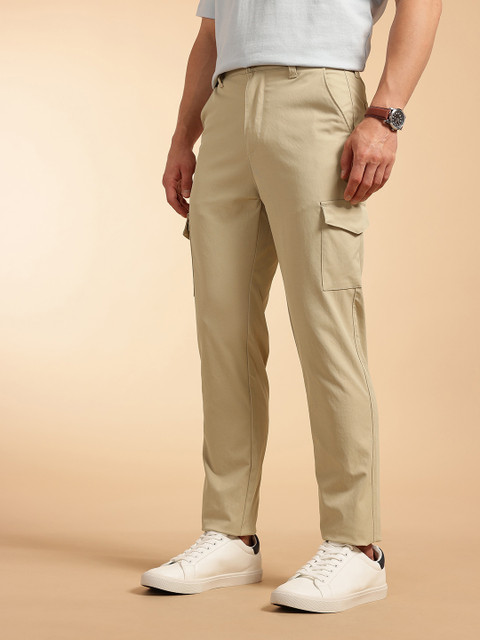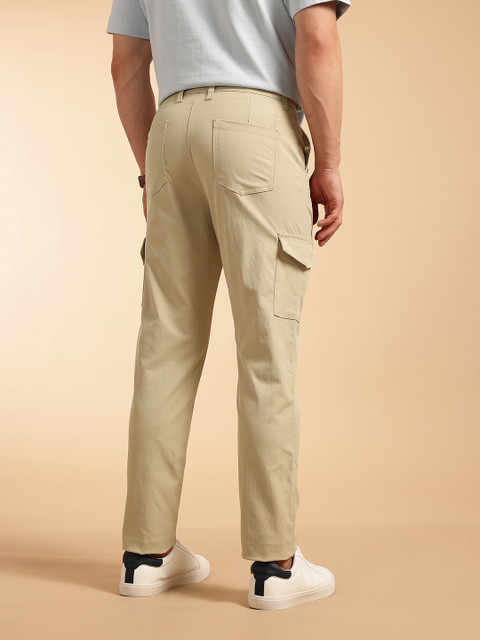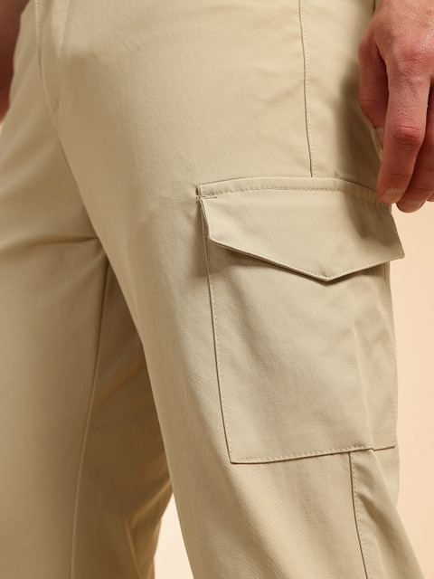- Beige woven cargo trousers