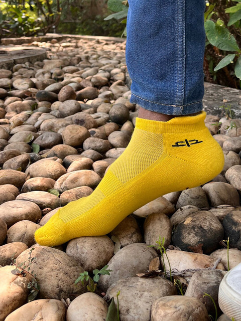 Pack of 4 pairs of self-design ankle-length socks in grey, yellow and white, each has a ribbed mouth and a flat toe seam