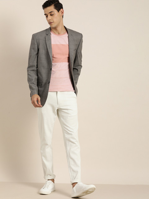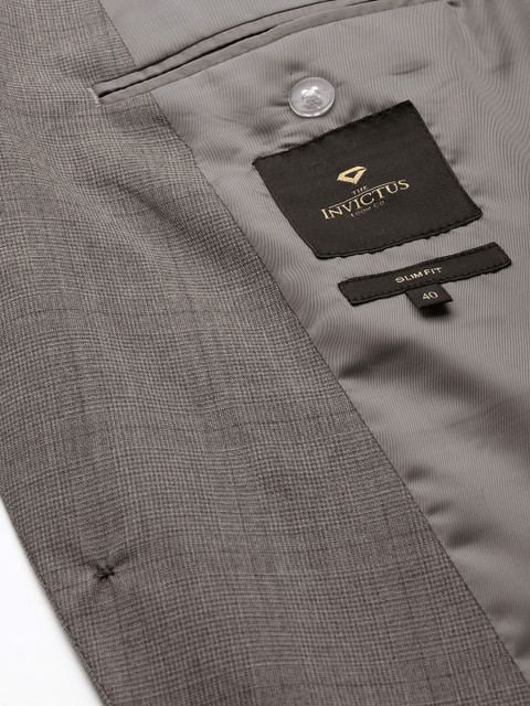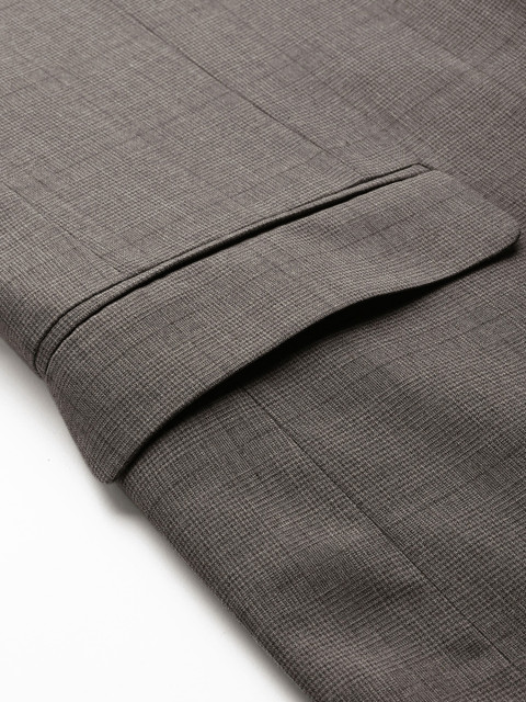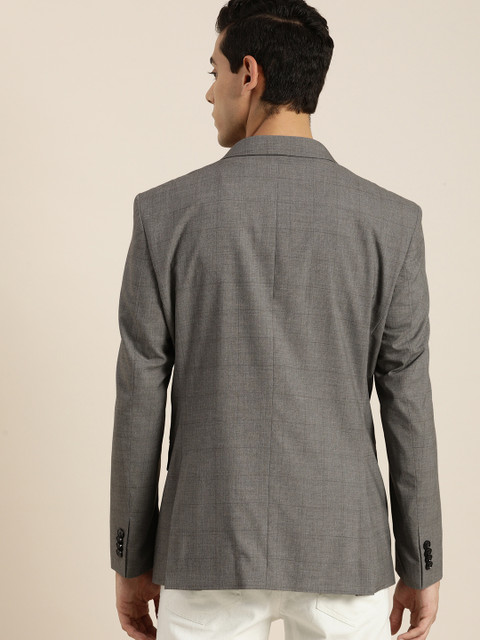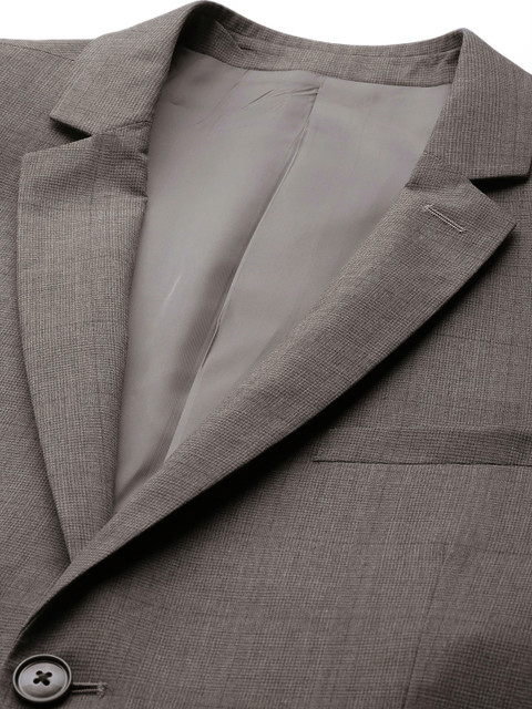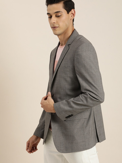 Grey & black self-design smart casual blazer, has a notched lapel collar, long sleeves, button placket, three welt pockets, has a lining with 2 built-in pockets