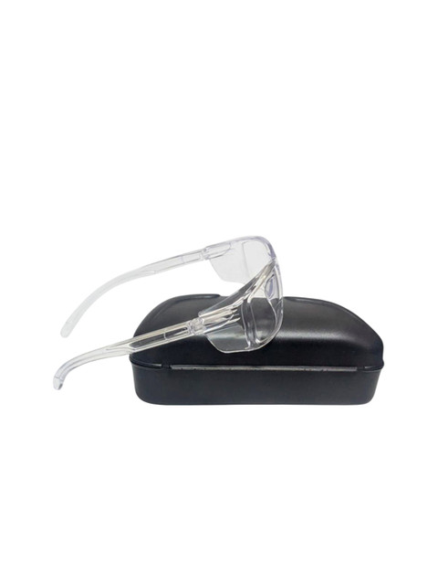 Lens Color: ClearFrame color: Clear Type: Safety GoggleFrame Material: PolycarbonateBest suited for Eye SafetyComes in a hard case with wipe cloth