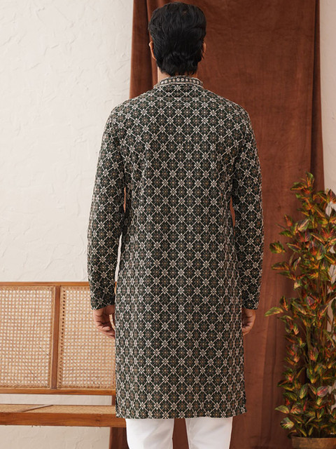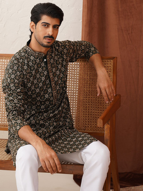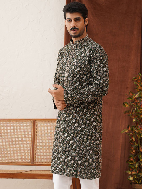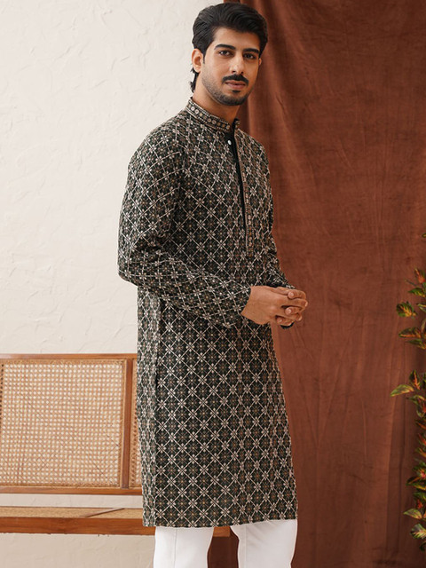 Jompers Men Geometric Embroidered Sequinned Kurta
