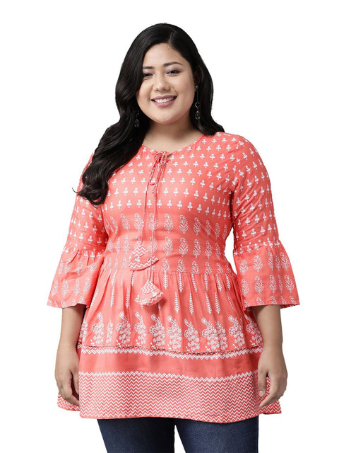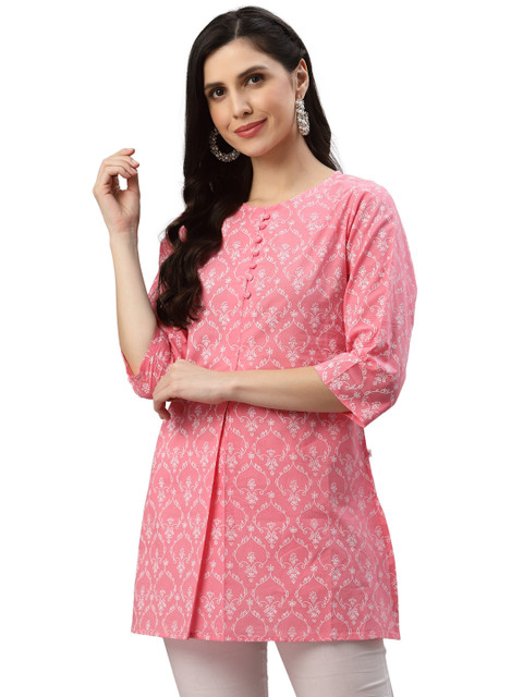 YASH GALLERY Pink & White Ethnic Motifs Printed Kurti