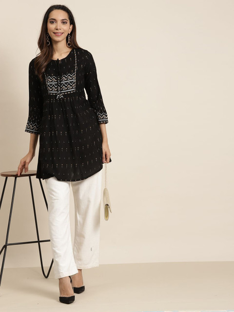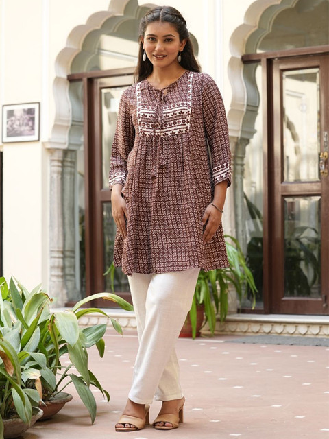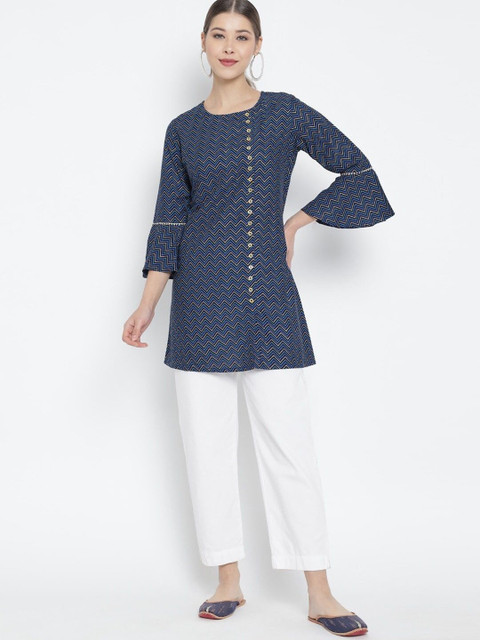 YASH GALLERY Women Round Neck Geometric Printed Three-Quarter Sleeves Kurti