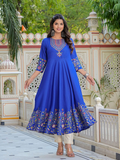 YASH GALLERY Women Ethnic Motifs Printed Three-Quarter Sleeves Anarkali Kurta